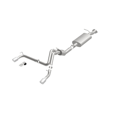 The MagnaFlow 2007-2008 Hummer H2 Street Series Cat-Back Performance Exhaust System brings out the personality of your 6.0L, 6.2L 2007-2008 Hummer H2 with our signature resonant, powerful engine tone and dyno-proven performance. Thanks to its fast-flowing, mandrel bent 3.5in. main piping and 2 Straight-Through mufflers ending in a Dual Split Rear exit with 4in. Polished Welded-On Double Wall Angle Cut Rolled Edge tips, this Hummer H2 exhaust kit has the performance chops to match its sporty sound and appearance. Upgrade your ride to the next level with an exhaust that has the pipes to put other Hummer H2's to shame. With this system your vehicle will be producing Moderate exterior and Mild interior sound levels while leaving other cars and trucks feeling envious at every stoplight. Exhaust kit 16772 features a cat-back layout that replaces your ride's stock exhaust components from near the catalytic converter on back. Extensive 3D scanning during development has resulted in a direct-fit design that you can easily install yourself. 16772 is produced using CNC precision robotic manufacturing techniques and is backed by MagnaFlow's 1-year limited finish warranty and limited lifetime construction warranty.