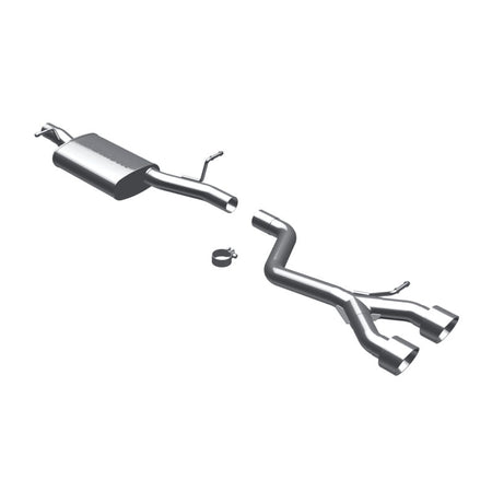 The MagnaFlow 2008 Volkswagen R32 Sport Series Cat-Back Performance Exhaust System 16502 enhances your 3.2L 2008-2008 Volkswagen R32 with an aggressive character that is sure to help you stand out from the other Volkswagen R32 you encounter on the street. With its 2.5in. diameter fast-flowing mandrel bent main piping that passes through 1 Straight-Through mufflers before ending in a Dual Center Rear exit with 4in. Polished Welded-On Double Wall Angle Cut Folded Edge tips, this dyno-proven Volkswagen R32 exhaust system refuses to be ignored. As such, 16502 is tuned to produce our powerful, resonant signature exhaust note at Aggressive exterior and Moderate interior sound levels, so please check to ensure compliance with local noise regulations. The system's cat-back design replaces all your import's stock exhaust components from the catalytic converter on back. Extensive 3D scanning and CNC precision robotic manufacturing techniques are used to ensure that your exhaust system fits perfectly with just a simple do-it-yourself installation process. The durable, corrosion resistant stainless steel construction of 16502 is backed by MagnaFlow's limited lifetime warranty.