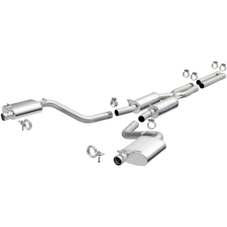 The MagnaFlow 2009-2014 Dodge Challenger Street Series Cat-Back Performance Exhaust System 16514 brings out the personality of your 5.7L 2009-2014 Dodge Challenger with our signature resonant, powerful engine tone and dyno-proven performance. Thanks to its fast-flowing, mandrel bent 2.5in. main piping and 4 Straight-Through mufflers ending in a Dual Split Rear exit, this Dodge Challenger exhaust kit has the performance chops to match its sporty sound and appearance. Upgrade your ride to the next level with an exhaust that has the pipes to put other Dodge Challenger's to shame. With this system your vehicle will be producing Moderate exterior and Mild interior sound levels while leaving other cars and trucks feeling envious at every stoplight. Exhaust kit 16514 features a cat-back layout that replaces your ride's stock exhaust components from near the catalytic converter on back. Extensive 3D scanning during development has resulted in a direct-fit design that you can easily install yourself. 16514 is produced using CNC precision robotic manufacturing techniques and is backed by MagnaFlow's 1-year limited finish warranty and limited lifetime construction warranty.