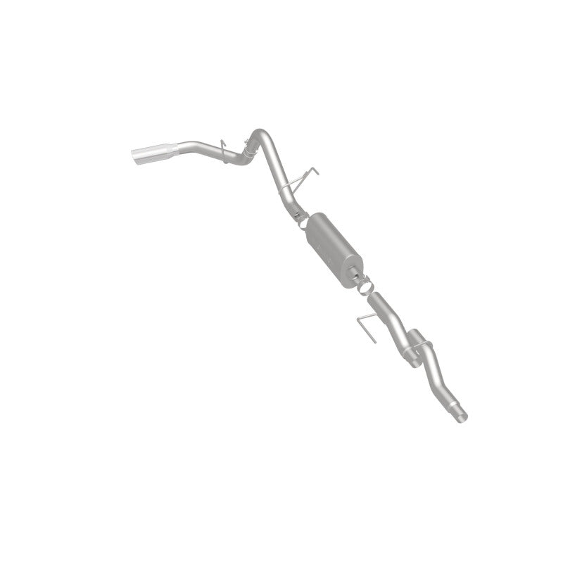 The MagnaFlow Street Series Cat-Back Performance Exhaust System 16518 brings out the personality of your Truck with our signature resonant, powerful engine tone and dyno-proven performance. Thanks to its fast-flowing, mandrel bent 3in. main piping and 1 Straight-Through mufflers ending in a Single Passenger Side Rear exit with 4in. Polished Welded-On Double Wall Angle Cut Rolled Edge tips, this Truck exhaust kit has the performance chops to match its sporty sound and appearance. Upgrade your ride to the next level with an exhaust that has the pipes to put other Truck's to shame. With this system your vehicle will be producing Moderate exterior and Mild interior sound levels while leaving other cars and trucks feeling envious at every stoplight. Exhaust kit 16518 features a cat-back layout that replaces your ride's stock exhaust components from near the catalytic converter on back. Extensive 3D scanning during development has resulted in a direct-fit design that you can easily install yourself. 16518 is produced using CNC precision robotic manufacturing techniques and is backed by MagnaFlow's 1-year limited finish warranty and limited lifetime construction warranty.