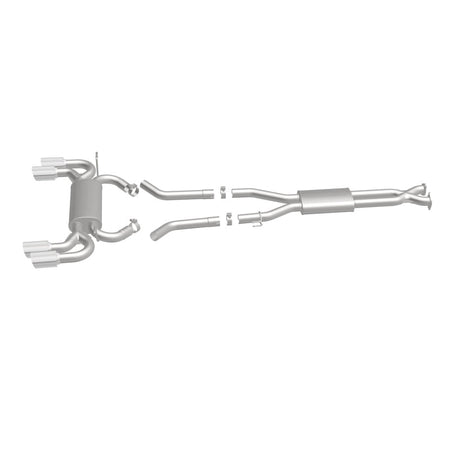 The MagnaFlow 2010-2016 Hyundai Genesis Coupe Street Series Cat-Back Performance Exhaust System 16507 brings out the personality of your 3.8L 2010-2016 Hyundai Genesis Coupe with our signature resonant, powerful engine tone and dyno-proven performance. Thanks to its fast-flowing, mandrel bent 2.5in. main piping and 2 Straight-Through mufflers ending in a Quad Split Rear exit with 4in. Polished Welded-On Double Wall Angle Cut Folded Edge tips, this Hyundai Genesis Coupe exhaust kit has the performance chops to match its sporty sound and appearance. Upgrade your ride to the next level with an exhaust that has the pipes to put other Hyundai Genesis Coupe's to shame. With this system your vehicle will be producing Moderate exterior and Mild interior sound levels while leaving other cars and trucks feeling envious at every stoplight. Exhaust kit 16507 features a cat-back layout that replaces your ride's stock exhaust components from near the catalytic converter on back. Extensive 3D scanning during development has resulted in a direct-fit design that you can easily install yourself. 16507 is produced using CNC precision robotic manufacturing techniques and is backed by MagnaFlow's 1-year limited finish warranty and limited lifetime construction warranty.