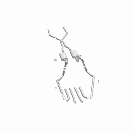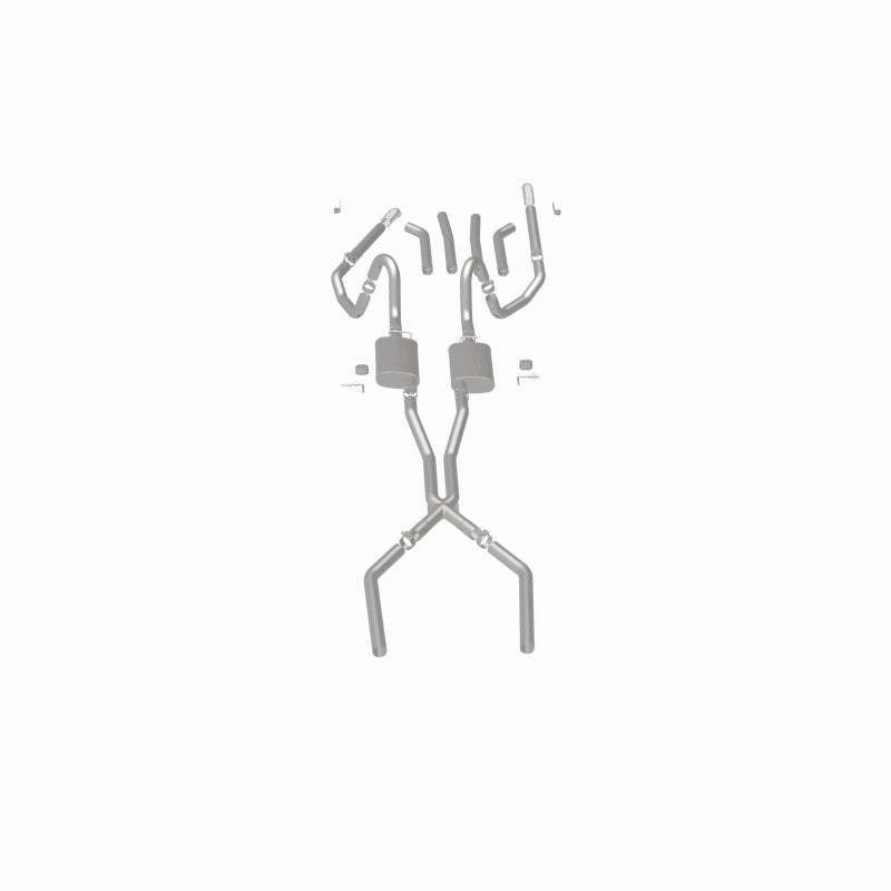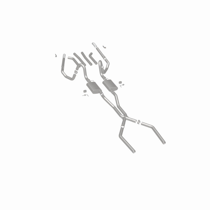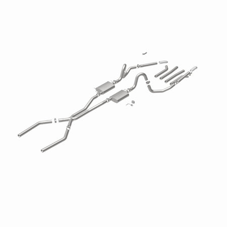 The MagnaFlow Street Series Crossmember-Back Performance Exhaust System 15893 brings enhanced engine sound and dyno-proven performance to your muscle car with a healthy helping of our deep, resonant signature exhaust note at Moderate exterior and Mild interior sound levels. Thanks to its durable, corrosion resistant stainless steel design, this exhaust system will handle whatever tarmac you decide to leave your mark on. This performance exhaust kit features a crossmember-back layout designed to replace your exhaust system from the crossmember on back. With its fast-flowing, mandrel bent 2.5in. main piping and 2 Straight-Through mufflers ending in a Multiple Exit Options exit with 2.75in. Polished Weld-On Single Wall Turndown Cut Edge tips, your muscle car will be sounding as awesome as it looks. Extensive 3D scanning during development has resulted in a direct-fit design that you can easily install yourself. 15893 is produced using CNC precision robotic manufacturing techniques and is backed by MagnaFlow's limited lifetime construction warranty.