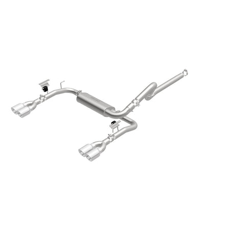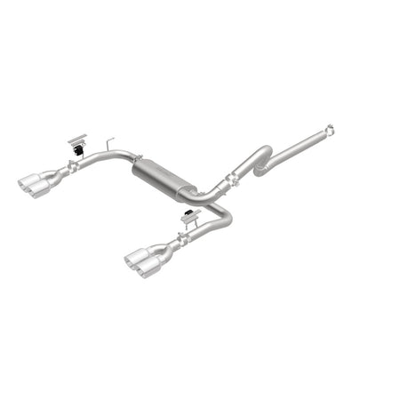 The MagnaFlow Street Series Cat-Back Performance Exhaust System 16723 brings out the personality of your Car with our signature resonant, powerful engine tone and dyno-proven performance. Thanks to its fast-flowing, mandrel bent 3in. main piping and 1 Straight-Through mufflers ending in a Quad Split Rear exit with 4in. Polished Welded-On Double Wall Angle Cut Rolled Edge tips, this Car exhaust kit has the performance chops to match its sporty sound and appearance. Upgrade your ride to the next level with an exhaust that has the pipes to put other Car's to shame. With this system your vehicle will be producing Moderate exterior and Mild interior sound levels while leaving other cars and trucks feeling envious at every stoplight. Exhaust kit 16723 features a cat-back layout that replaces your ride's stock exhaust components from near the catalytic converter on back. Extensive 3D scanning during development has resulted in a direct-fit design that you can easily install yourself. 16723 is produced using CNC precision robotic manufacturing techniques and is backed by MagnaFlow's 1-year limited finish warranty and limited lifetime construction warranty.