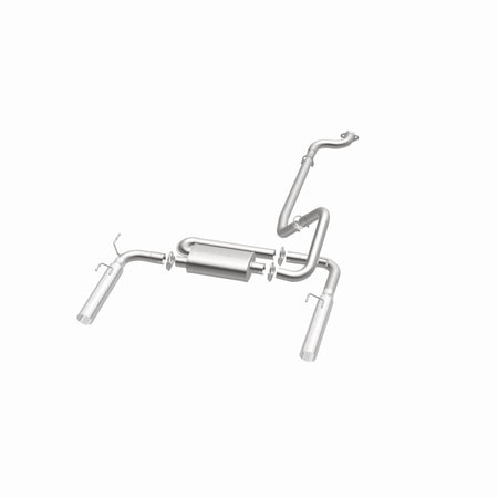The MagnaFlow Street Series Cat-Back Performance Exhaust System 15693 brings out the personality of your Car with our signature resonant, powerful engine tone and dyno-proven performance. Thanks to its fast-flowing, mandrel bent 2.5in. main piping and 1 Straight-Through mufflers ending in a Dual Split Rear exit with 3.5in. Polished Welded-On Single Wall Angle Cut Cut Edge tips, this Car exhaust kit has the performance chops to match its sporty sound and appearance. Upgrade your ride to the next level with an exhaust that has the pipes to put other Car's to shame. With this system your vehicle will be producing Moderate exterior and Mild interior sound levels while leaving other cars and trucks feeling envious at every stoplight. Exhaust kit 15693 features a cat-back layout that replaces your ride's stock exhaust components from near the catalytic converter on back. Extensive 3D scanning during development has resulted in a direct-fit design that you can easily install yourself. 15693 is produced using CNC precision robotic manufacturing techniques and is backed by MagnaFlow's 1-year limited finish warranty and limited lifetime construction warranty.