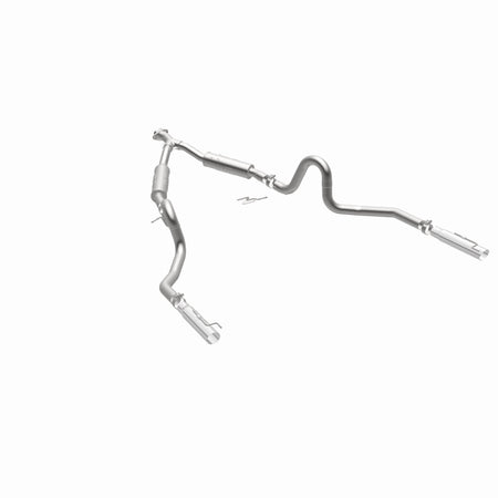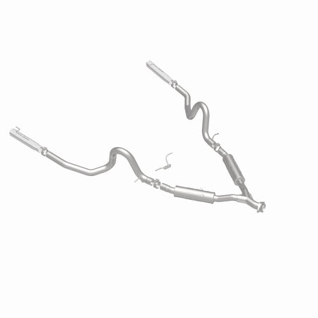 The MagnaFlow 1999-2004 Ford Mustang Street Series Cat-Back Performance Exhaust System 15717 brings out the personality of your 3.8L, 3.9L 1999-2004 Ford Mustang with our signature resonant, powerful engine tone and dyno-proven performance. Thanks to its fast-flowing, mandrel bent 2.5in. main piping and 2 Straight-Through mufflers ending in a Dual Split Rear exit with 3in. Polished Clamp-On Single Wall Angle Cut Cut Edge tips, this Ford Mustang exhaust kit has the performance chops to match its sporty sound and appearance. Upgrade your ride to the next level with an exhaust that has the pipes to put other Ford Mustang's to shame. With this system your vehicle will be producing Moderate exterior and Mild interior sound levels while leaving other cars and trucks feeling envious at every stoplight. Exhaust kit 15717 features a cat-back layout that replaces your ride's stock exhaust components from near the catalytic converter on back. Extensive 3D scanning during development has resulted in a direct-fit design that you can easily install yourself. 15717 is produced using CNC precision robotic manufacturing techniques and is backed by MagnaFlow's 1-year limited finish warranty and limited lifetime construction warranty.