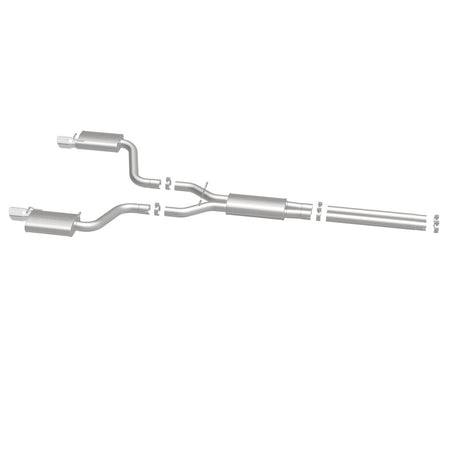 The MagnaFlow Street Series Cat-Back Performance Exhaust System 16642 brings out the personality of your Car with our signature resonant, powerful engine tone and dyno-proven performance. Thanks to its fast-flowing, mandrel bent 3in. main piping and 3 Straight-Through mufflers ending in a Dual Split Rear exit with 4in. Polished Welded-On Double Wall Angle Cut Folded Edge tips, this Car exhaust kit has the performance chops to match its sporty sound and appearance. Upgrade your ride to the next level with an exhaust that has the pipes to put other Car's to shame. With this system your vehicle will be producing Moderate exterior and Mild interior sound levels while leaving other cars and trucks feeling envious at every stoplight. Exhaust kit 16642 features a cat-back layout that replaces your ride's stock exhaust components from near the catalytic converter on back. Extensive 3D scanning during development has resulted in a direct-fit design that you can easily install yourself. 16642 is produced using CNC precision robotic manufacturing techniques and is backed by MagnaFlow's 1-year limited finish warranty and limited lifetime construction warranty.