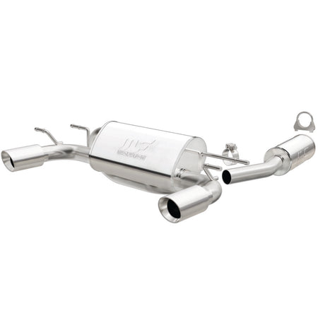 The MagnaFlow 2006-2014 Mazda MX-5 Miata Street Series Cat-Back Performance Exhaust System 16668 brings out the personality of your 2.0L 2006-2014 Mazda MX-5 Miata with our signature resonant, powerful engine tone and dyno-proven performance. Thanks to its fast-flowing, mandrel bent 2.5in. main piping and 2 Straight-Through mufflers ending in a Dual Split Rear exit with 3.5in. Polished Welded-On Double Wall Angle Cut Folded Edge tips, this Mazda MX-5 Miata exhaust kit has the performance chops to match its sporty sound and appearance. Upgrade your ride to the next level with an exhaust that has the pipes to put other Mazda MX-5 Miata's to shame. With this system your vehicle will be producing Moderate exterior and Mild interior sound levels while leaving other cars and trucks feeling envious at every stoplight. Exhaust kit 16668 features a cat-back layout that replaces your ride's stock exhaust components from near the catalytic converter on back. Extensive 3D scanning during development has resulted in a direct-fit design that you can easily install yourself. 16668 is produced using CNC precision robotic manufacturing techniques and is backed by MagnaFlow's 1-year limited finish warranty and limited lifetime construction warranty.