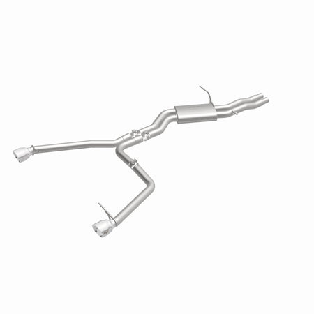 The MagnaFlow 2014-2017 Audi Q5 Touring Series Cat-Back Performance Exhaust System 15378 is the perfect partner for your 3.0L 2014-2017 Audi Q5 to take on a grand tour or a weekend cruise thanks to the powerful, resonant exhaust note and dyno-proven performance it brings to the table. This durable, corrosion resistant stainless steel exhaust kit is engineered to conquer the miles with ease while enhancing your driving experience with Moderate exterior and Mild interior sound levels generated through its fast-flowing, mandrel bent 2.5in. main piping and 1 Straight-Through muffler that terminate in a Dual Split Rear exit with 4.5in. Polished Welded-On Double Wall Angle Cut Folded Edge tips. 15378 features a cat-back layout design to replace your import's stock exhaust components from the catalytic converter on back. This Audi Q5 exhaust system is compatible with 2014-2017 engines. The use of extensive 3D scans made during the development process has resulted in an easy-to-install, direct-fit design that fits your Audi Q5 like a glove. 15378 is produced using CNC precision robotic manufacturing techniques and is backed by MagnaFlow's limited lifetime construction warranty.