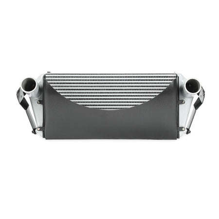 Mishimoto has released a performance intercooler kit for the 2013-2018 Dodge 6.7L Cummins. This kit includes everything you need to improve airflow, substantially decrease charge-air temperatures and support your truck at any power level. The first key component is the Mishimoto 6.7L Cummins intercooler piping kit. Our engineers have maximized airflow by eliminating restrictive bends, allowing for smooth and unimpeded airflow. The piping is constructed of mandrel-bent 3in aluminum for smooth flow and rugged durability. Also included are Mishimoto silicone boots with DuraCore technology and Mishimoto Constant-Tension T-Bolt Clamps for accurate and consistent holding force. Mishimoto DuraCore technology comprises the innermost layer of all Mishimoto diesel silicone boots. Compared to normal silicone, DuraCore provides superior resistance to heat, pressure, fuel, and oil. This effectively increases the life of your boots and prevents leaks or blowouts. This package also includes the Mishimoto 6.7L Cummins intercooler. Extremely durable cast aluminum end tanks and a bar-and-plate core provide cool, dense air to your engine, with the reliability you need. With a 76.65-percent increase in external fin surface area, and a 37.8-percent larger core, this intercooler is proven to reduce intake air temps by 12.5-percent. All the components in this kit are engineered to last, just like your truck. Offered with either a Sleek Silver or Stealth Black core, the Mishimoto 6.7L Cummins intercooler kit, like all our Dodge Ram performance parts, is protected by the Mishimoto Lifetime Warranty. Whether your Cummins is stock or modified, trust Mishimoto and our line of Dodge Ram performance parts to keep your Dodge cool.