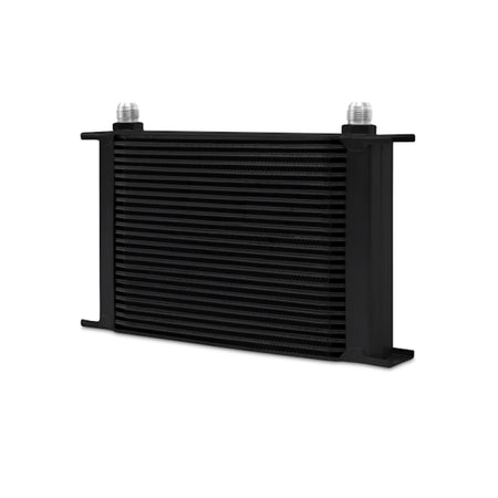 Every street or track vehicle demands a reliable and efficient cooling system.High oil temperatures accelerate oil degradation and can result in increased engine wear and potential failure of internal components.The Mishimoto universal 25-row oil cooler is the perfect upgrade for extending engine life and ensuring the proper lubrication of engine components while maintaining ideal oil temperatures.This oil cooler is nearly 2 inches thick and has an overall oil capacity of .44 qt.The Mishimoto universal 25-row oil cooler is available in silver or black and includes the Mishimoto lifetime warranty.