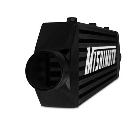 Sleek and stylish, this universal front-mount intercooler will provide the perfect cooling capacity needed for larger turbo applications.All Mishimoto intercoolers are constructed of 6061 aluminum and are TIG welded to perfection.Coated all-black finish gives this intercooler a sleeper look when mounted.Note: For your taste, only one side of the intercooler has the Mishimoto logo.