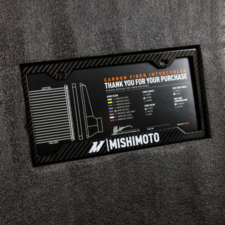 Building a performance vehicle is a quest for balance between opposing needs. Form vs function. Power vs weight. Strength vs lightness. Most of the time, one of those needs is more important to the build, so the other is sacrificed. But here at Mishimoto, we're done sacrificing. Thanks to our exclusive carbon fiber intercooler, you can have it all: aesthetics, performance, strength, and lightness all rolled into one innovative package. The end tanks are formed from solid 3K twill-woven carbon fiber. Carbon fiber gives our end tanks more strength than aluminum with 70% less weight. Three sizes of custom-engineered cores between the carbon fiber end tanks, combined with 3-inch inlets optimized for flow, ensure our intercooler is up to the task for builds producing up to 950 horsepower and 32 PSI of boost. The one-of-a-kind V-band core clamps hold the end tanks tight to the core under boost without the use of adhesives that can fail after repeated heat cycles. To ensure the end tanks can hold up to the rigors of road or track, they've been independently laboratory tested to SAE J400 standards for gravel impacts. With the Mishimoto carbon fiber intercooler, you don't have to sacrifice performance or strength for lightness. Carbon fiber isn't just strong, it's one of the most stunning raw materials available. Nothing beats the look of precisely woven carbon fiber