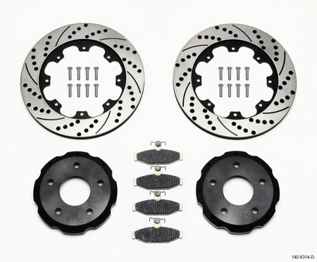 ProMatrix Brake pad and rotor upgrade kits offer measurable brake performance improvements to racers and enthusiasts using the OE factory brake calipers. High performance pad compounds are specially selected to provide increased brake response and higher resistance against fade. Two-piece directional vane GT rotor kits provide high temperature durability for the track. SRP drilled and slotted black e-coat rotor kits provide high-tech style with corrosion resistance for the street. Wilwood Promatrix pads feature specially selected compounds for enhanced performance through increased friction properties and extended temperature range.